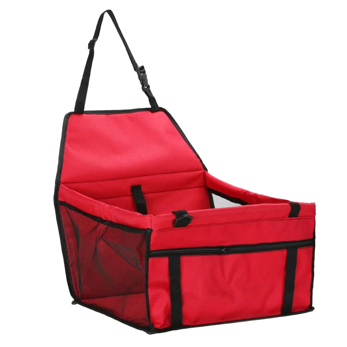 Red Folding Pet Dog Carrier for your car, featuring a waterproof pad